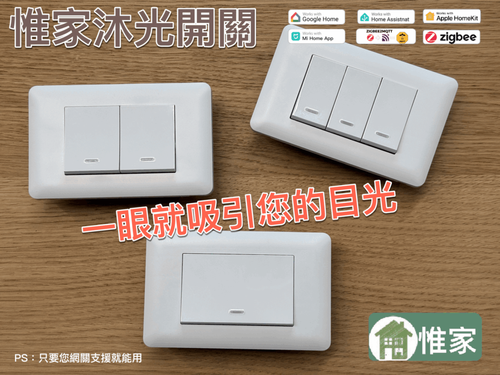 - 惟家沐光開關支援多種平台(Homekit、Google home、米家), 只要您的網關支援, 就能加入您的智能平台裡參與連動.