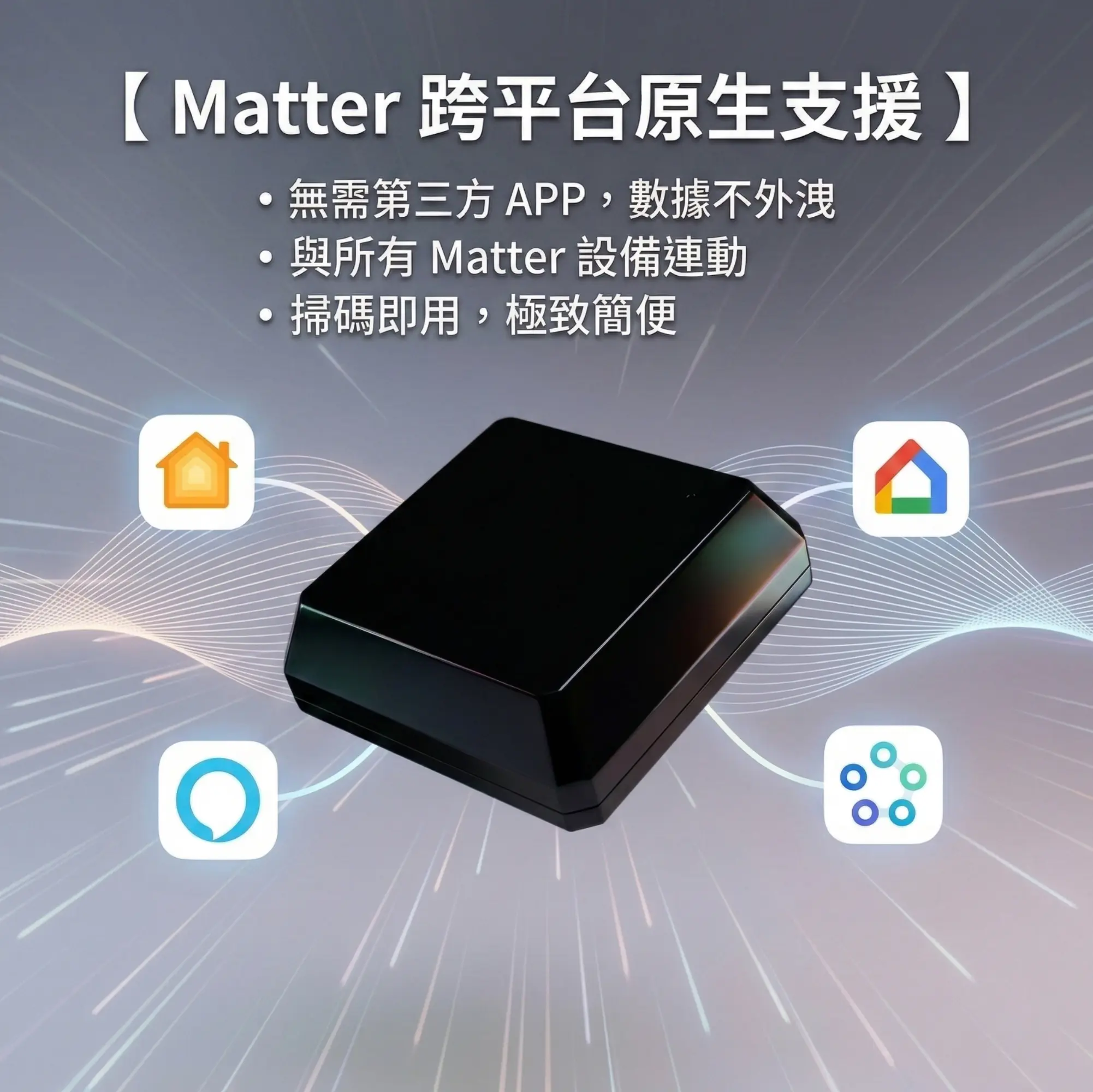 多平台完美相容: 支援 Matter 協議,無論是蘋果果粉、安卓用戶,甚至是 Home Assistant 玩家都能輕鬆連動。