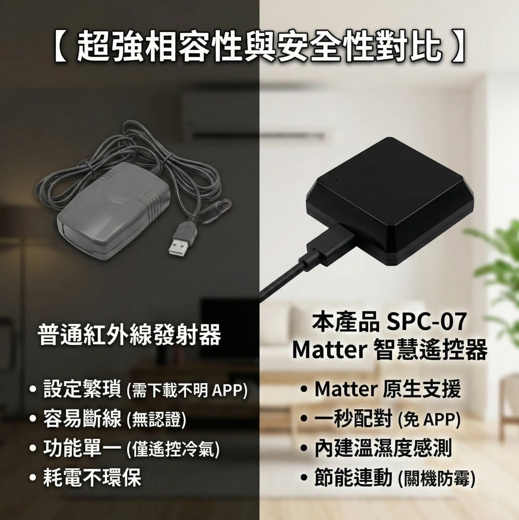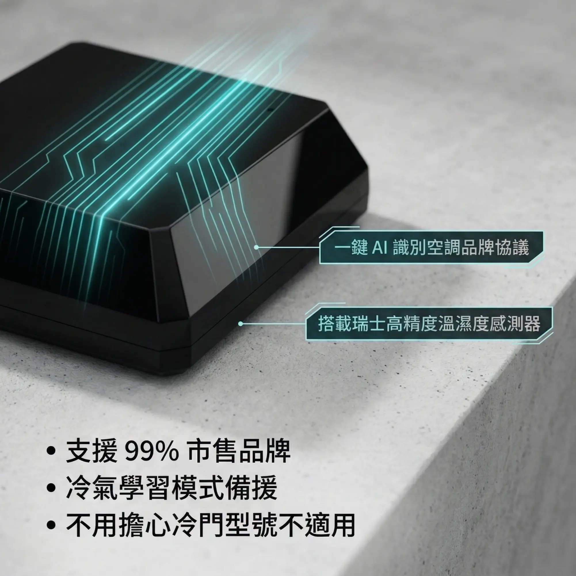 自帶精準感測: 部分產品僅有「發射紅外線」功能,無法得知室內真實溫濕度。我們內建高精度感測器,一步到位,替您省下額外擴充的費用。