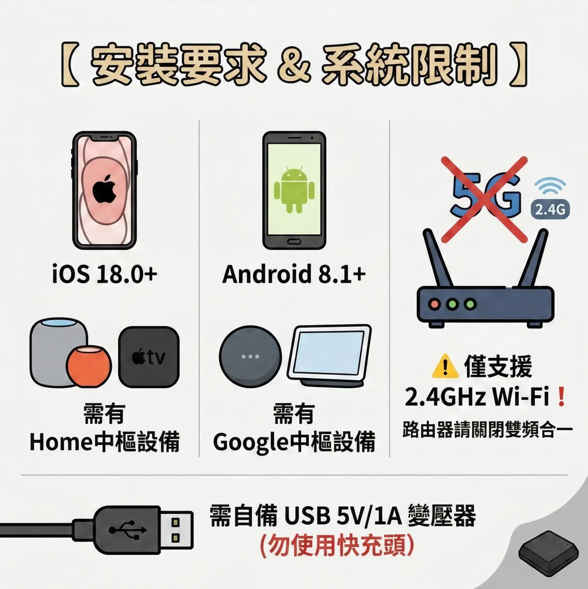 | 智慧認證 | Matter 認證 (支援 Apple/Google/Home Assistant) |
